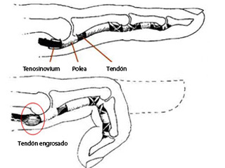 Zu Beginn der Behandlung ist eine konservative Therapie mit Ruhigstellung des Fingers durch eine Schiene und Gabe von Nicht-Steroidaler-Antirheumatika empfohlen. Oft kann durch Infiltration von Kortikoiden in oder an die betroffene Sehnenscheide bzw. das Ringband eine Besserung der Tendovaginitis erreicht werden.